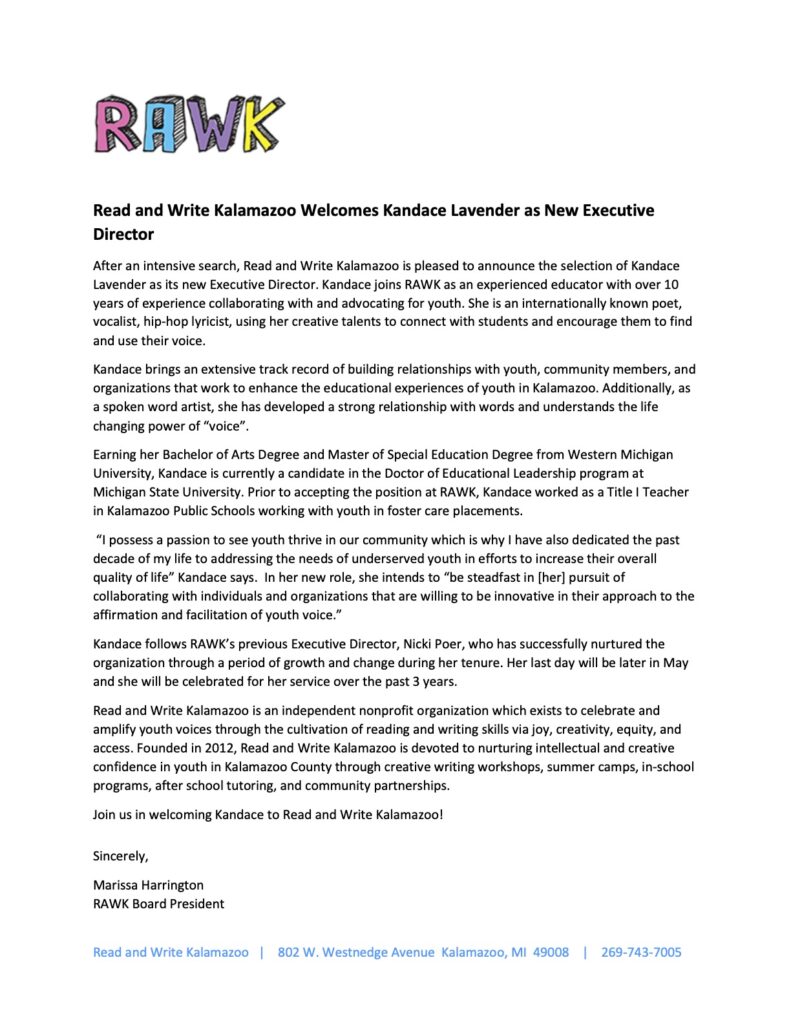 3 thoughts on “Welcoming Kandace Lavender, our new Executive Director!”